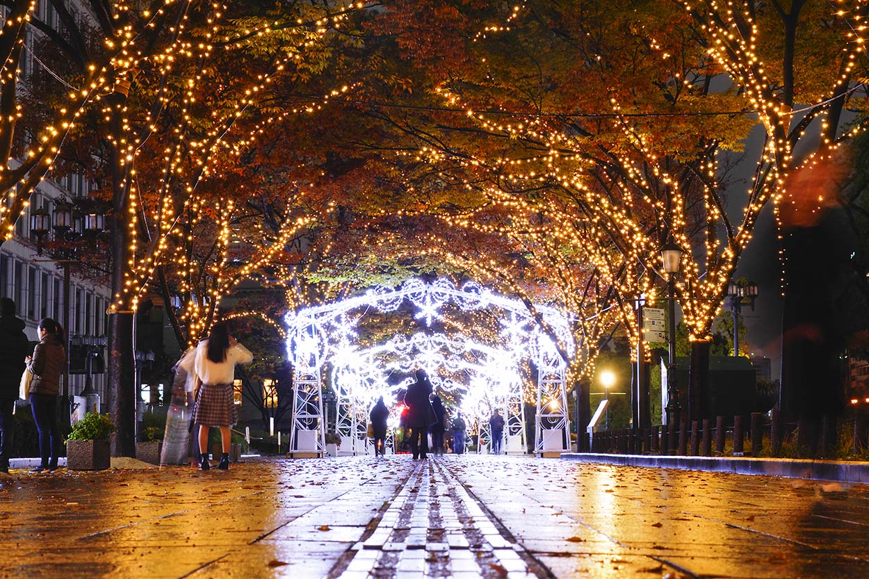 夜の大阪は、昼間とは違う顔を見せてくれます。街の光と影、そして季節感が織りなす幻想的な空間は、まるで街全体が大きなアート作品のよう。