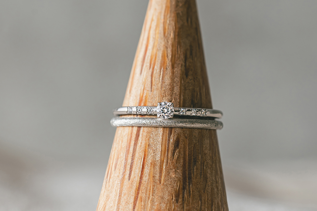 そんなときは、婚約指輪や別の指輪との重ねづけでボリューム感を出すなど、ライフステージに合わせたアレンジを楽しむのもおすすめです。