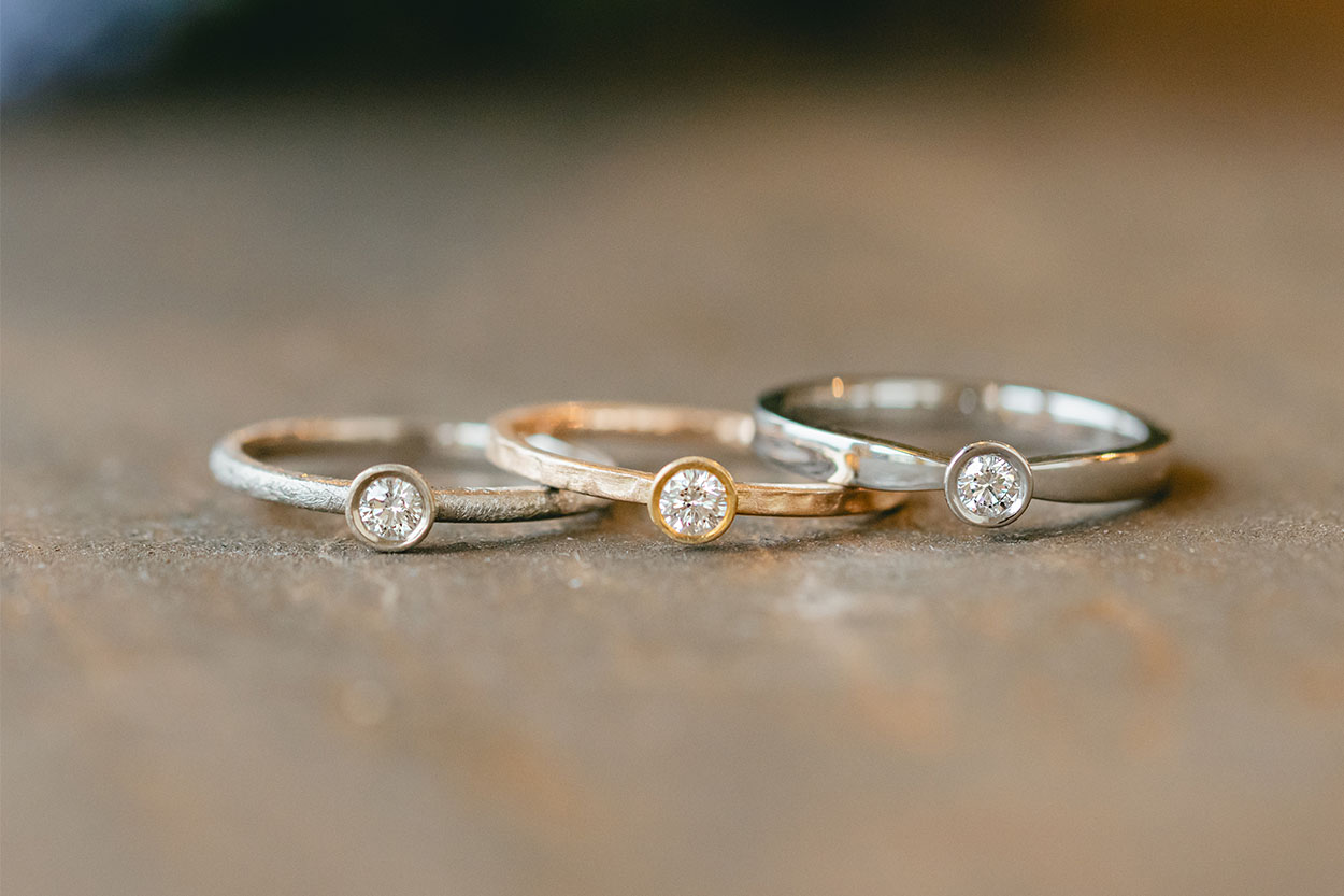 これらはダイヤモンドを留める「枠(わく)」のデザインの種類のことで、指輪全体の印象を決める大切なポイントです。