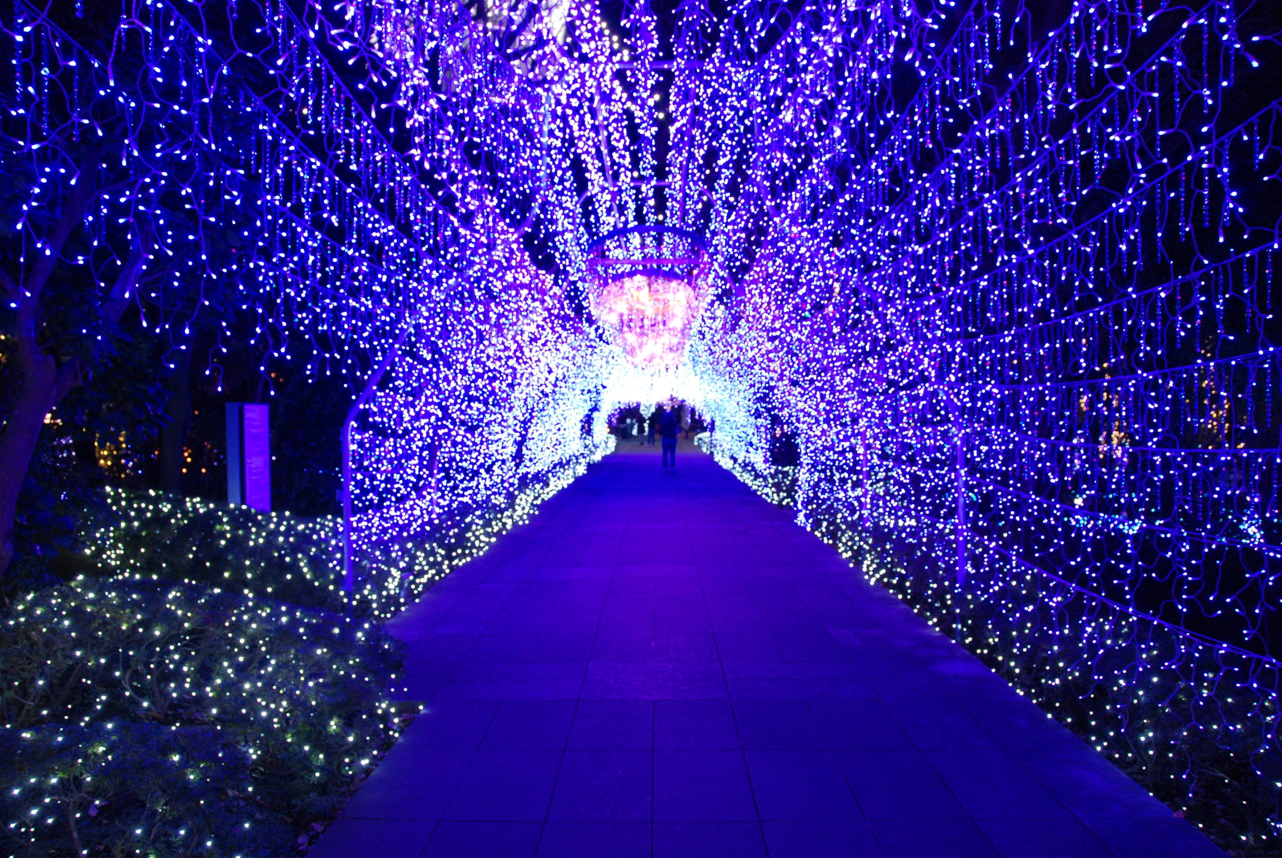 サムエル・コッキング苑の入口から続く「光のトンネル」は、毎年多くの人が写真を撮りに訪れる人気スポットです。 頭上に連なる光がゆるやかに色を変え、歩くだけで気分が高まるエリア。迫力あるシャンデリアが空間をより華やかに演出します。