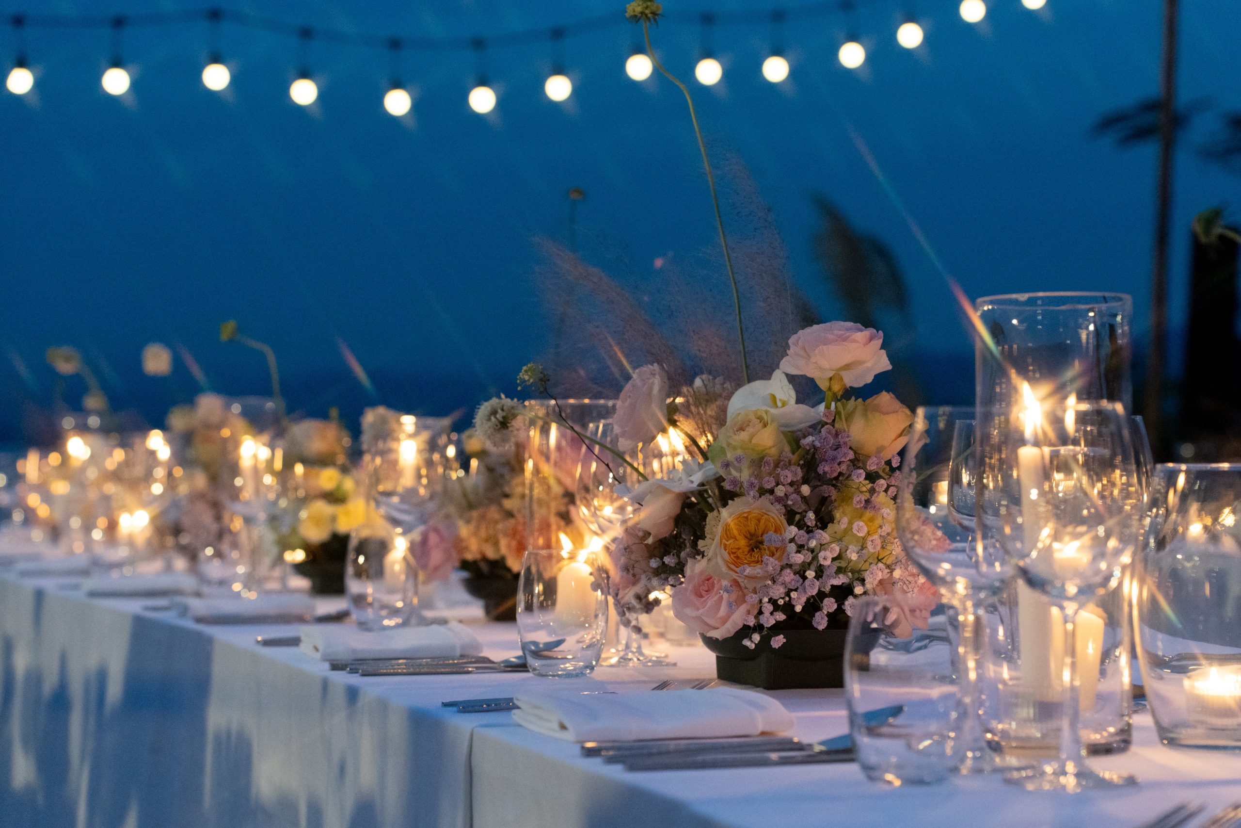 夜の時間は、照明や光の演出を最大限に活かすことができます。会場装飾やプログラムにひと工夫加えるだけで、ゲストを魅了する特別な空間を作り出せます。
