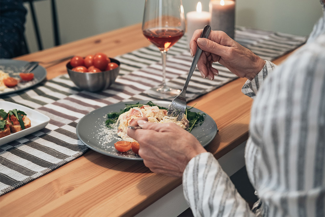 お気に入りのお取り寄せグルメや、少し良いワインを用意して。テーブルクロスを新調するなど、コーディネートを工夫するだけで、いつもの食卓が特別な空間に変わります。
