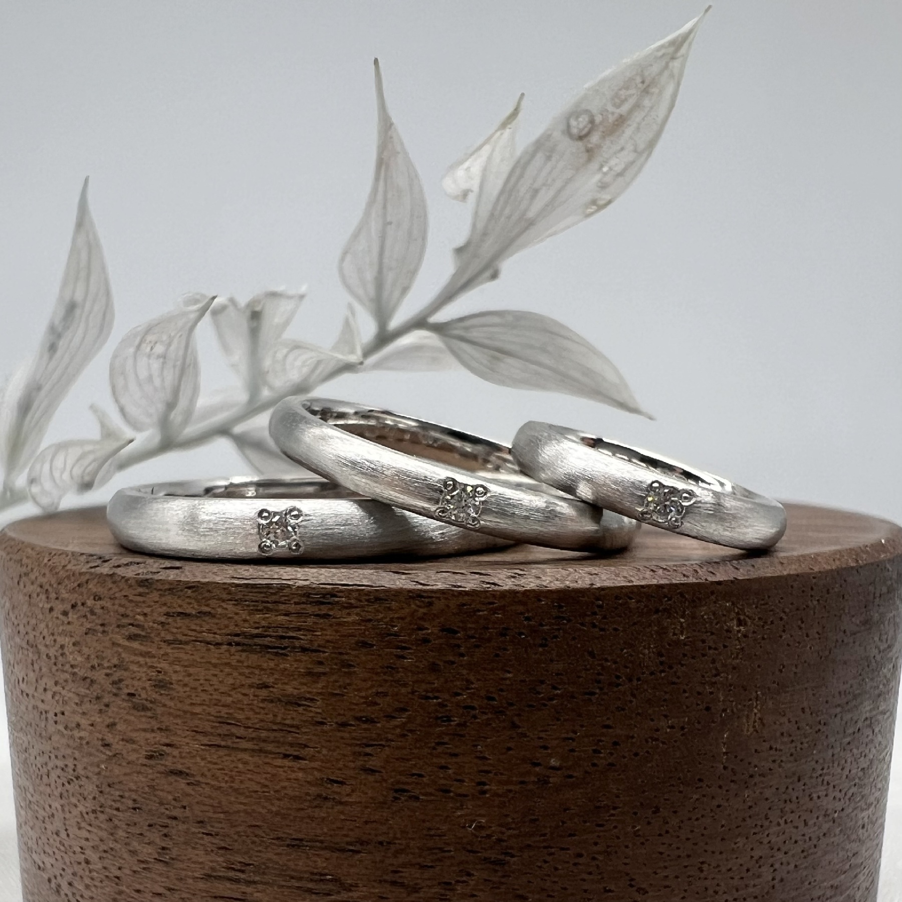 別名つや消し。アンティークジュエリーのような落ち着いた質感が表現できます。日常でできる傷が目立ちにくいのも魅力。