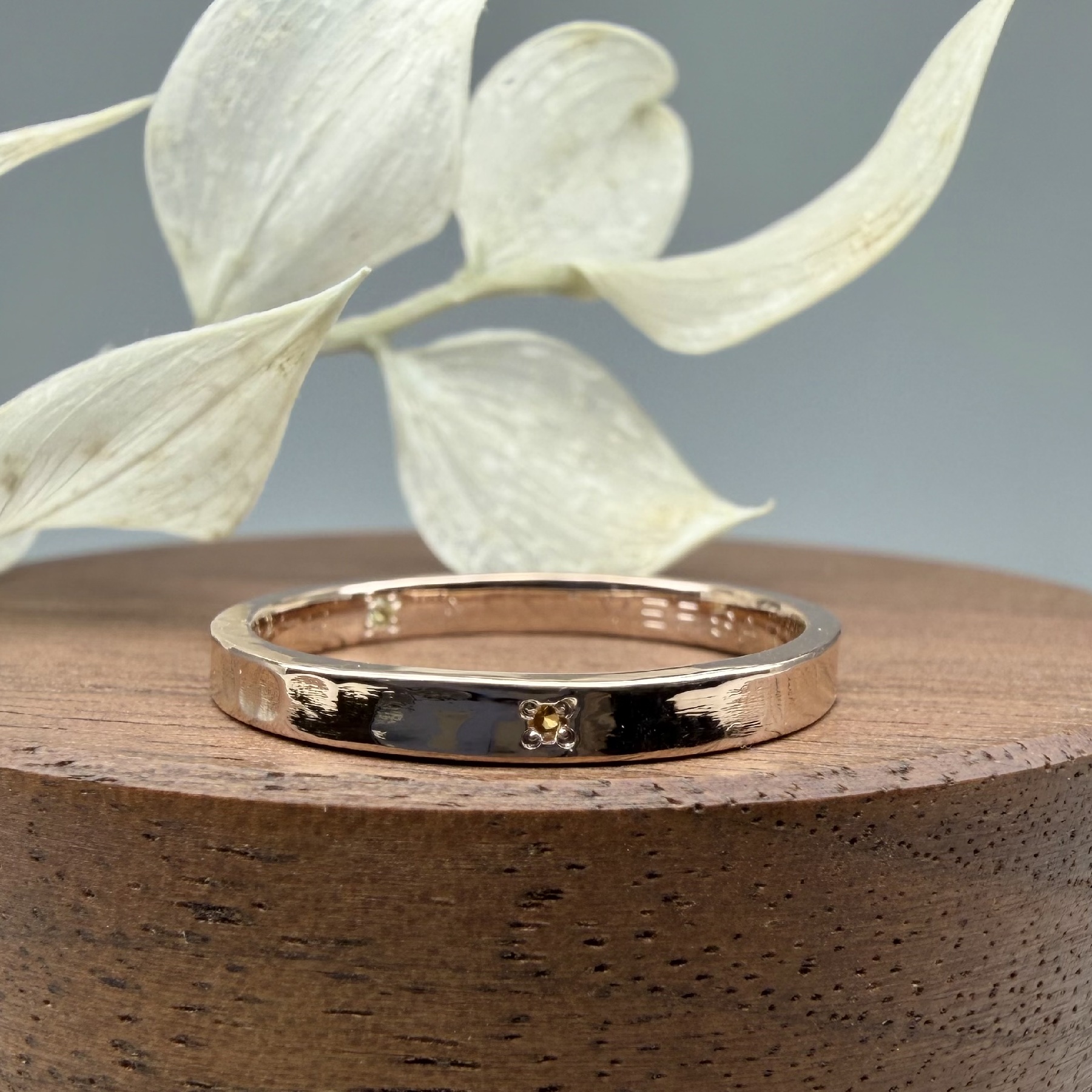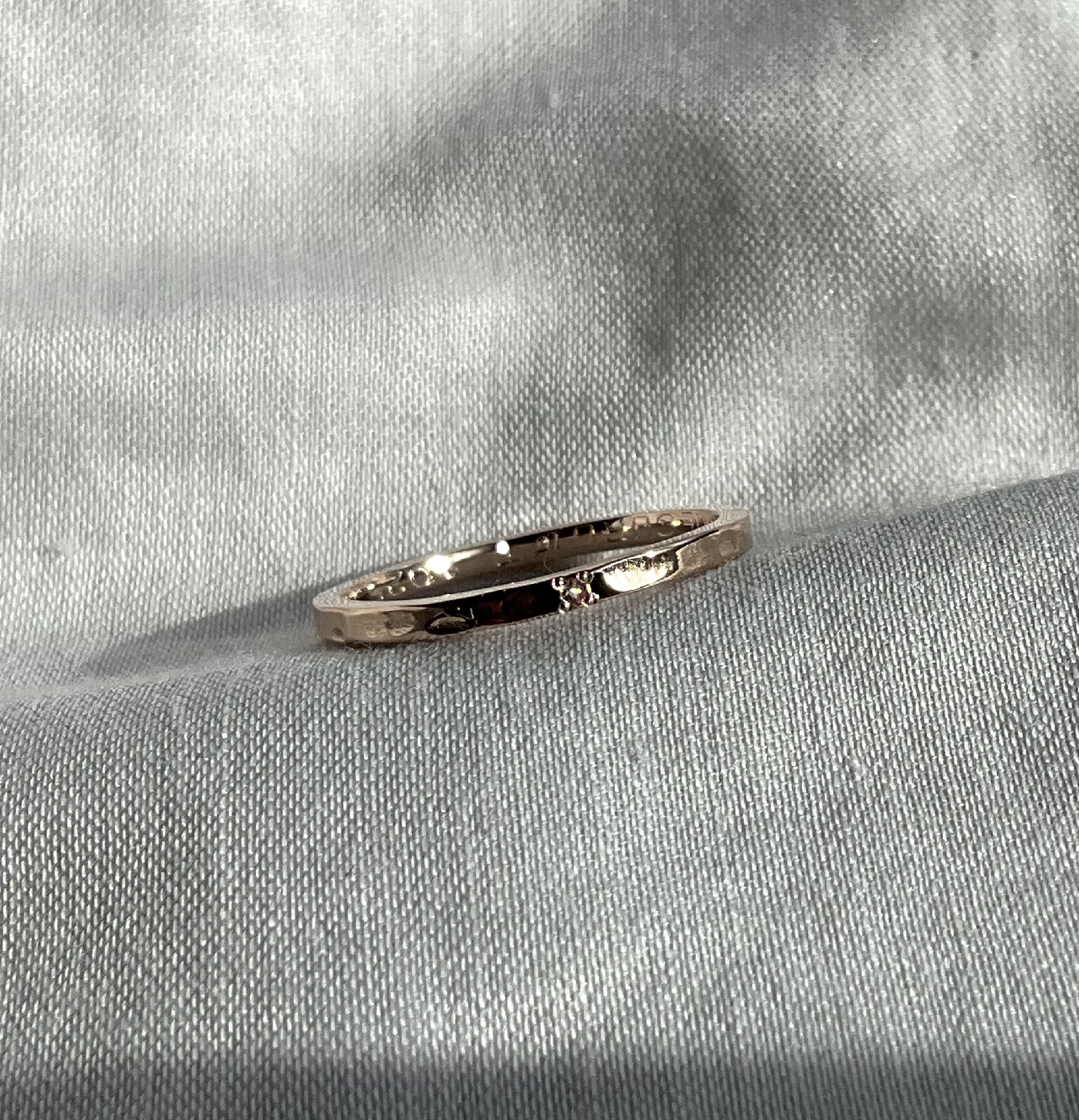 指輪の表面を平らにしたデザイン。存在感がありながら、シンプルなフォルムで日常へのなじみの良さも抜群です。