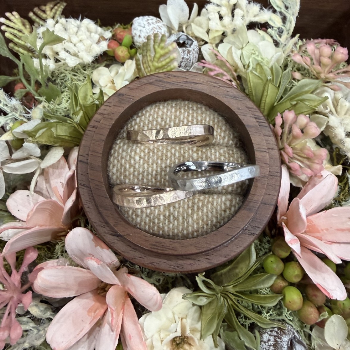 指輪の表面を鏡面のようにキラキラに磨き上げる王道の仕上げ。磨きの工程は大変ですが、その分達成感はひとしおです。