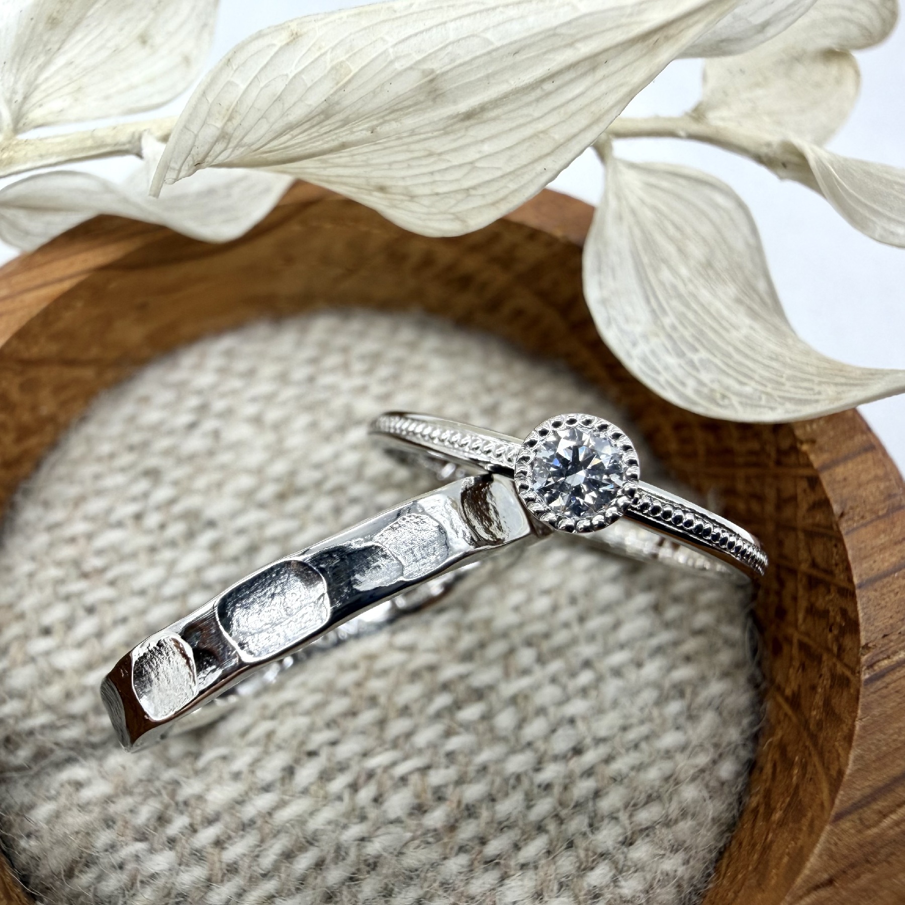 別名つや消し。アンティークジュエリーのような落ち着いた質感が表現できます。日常でできる傷が目立ちにくいのも魅力。