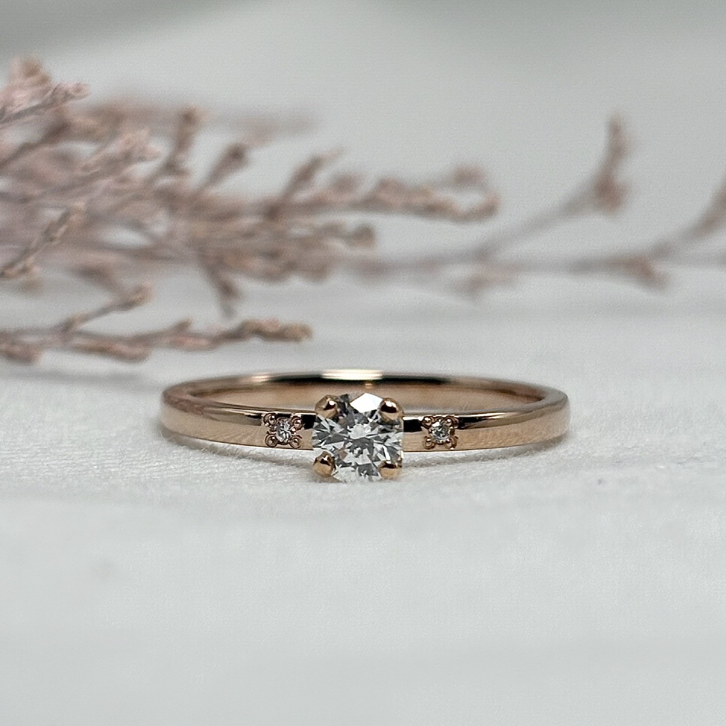 流行に左右されないデザインで、日常に馴染みやすい婚約指輪に仕上がります。単体で身につけるだけでなく、お気に入りの指輪との重ねづけもお楽しみください。
