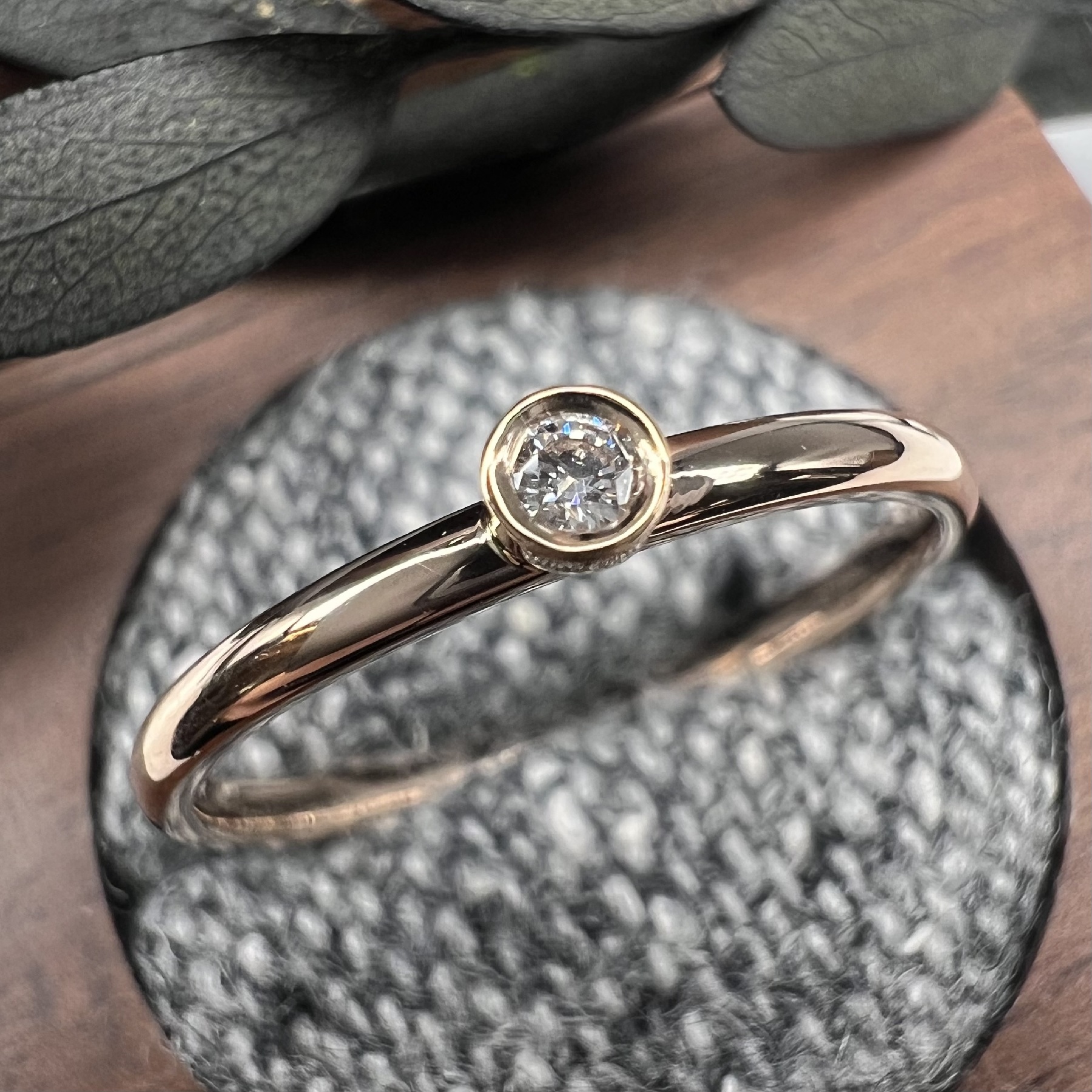 指輪の表面を鏡面のようにキラキラに磨き上げる王道の仕上げ。磨きの工程は大変ですが、その分達成感はひとしおです。