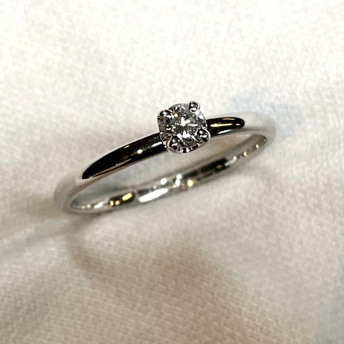 シャープな白い輝きが特徴の、ブライダルジュエリーの王道。変色に強く、普段使いしやすいことも魅力です。