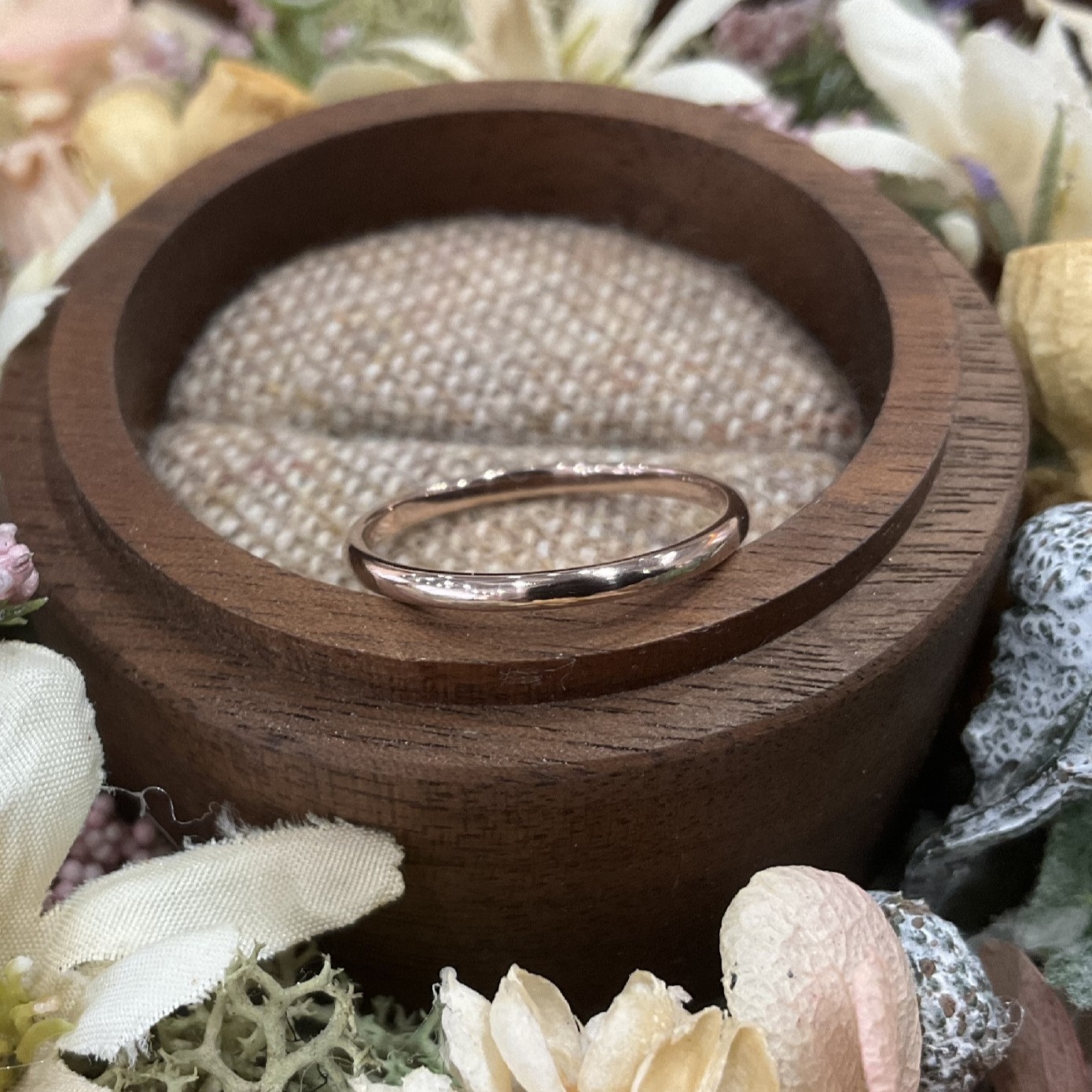 指なじみの良い丸みのあるデザイン。何十年たっても飽きのこないフォルムで「指輪の基本形」と言われています。