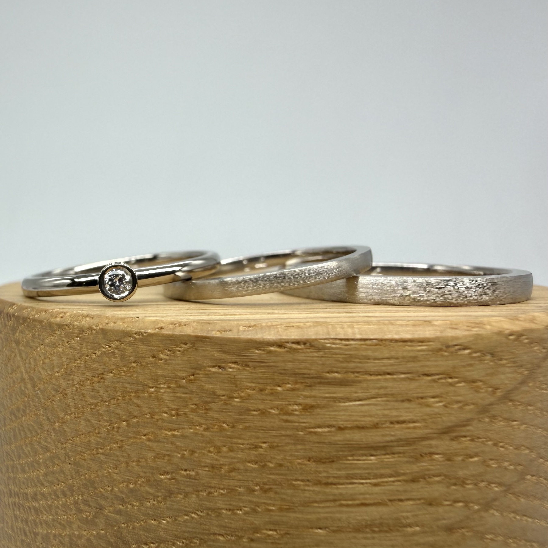 別名つや消し。アンティークジュエリーのような落ち着いた質感が表現できます。日常でできる傷が目立ちにくいのも魅力。