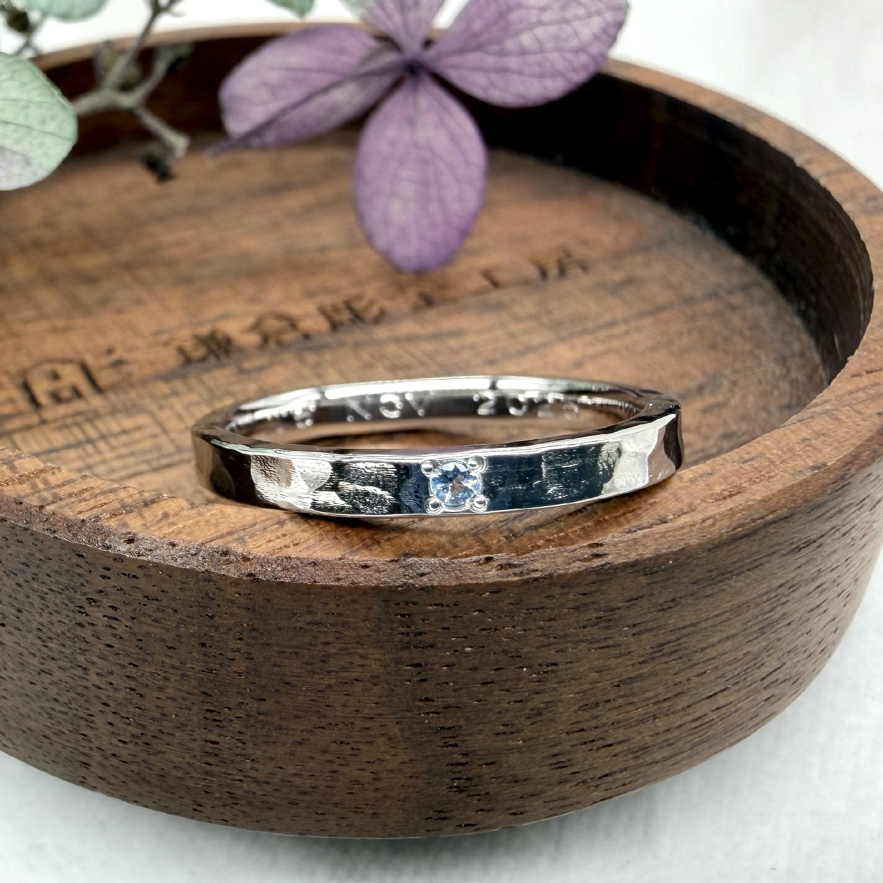 指輪の表面を平らにしたデザイン。存在感がありながら、シンプルなフォルムで日常へのなじみの良さも抜群です。
