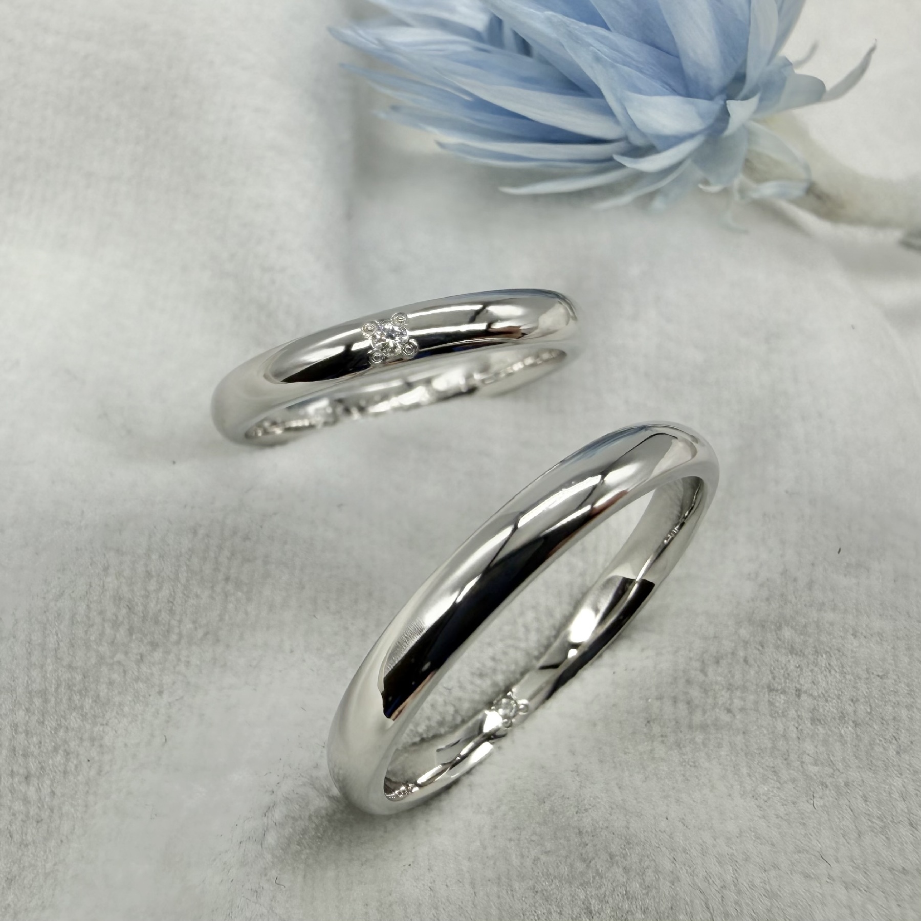 シャープな白い輝きが特徴の、ブライダルジュエリーの王道。変色に強く、普段使いしやすいことも魅力です。