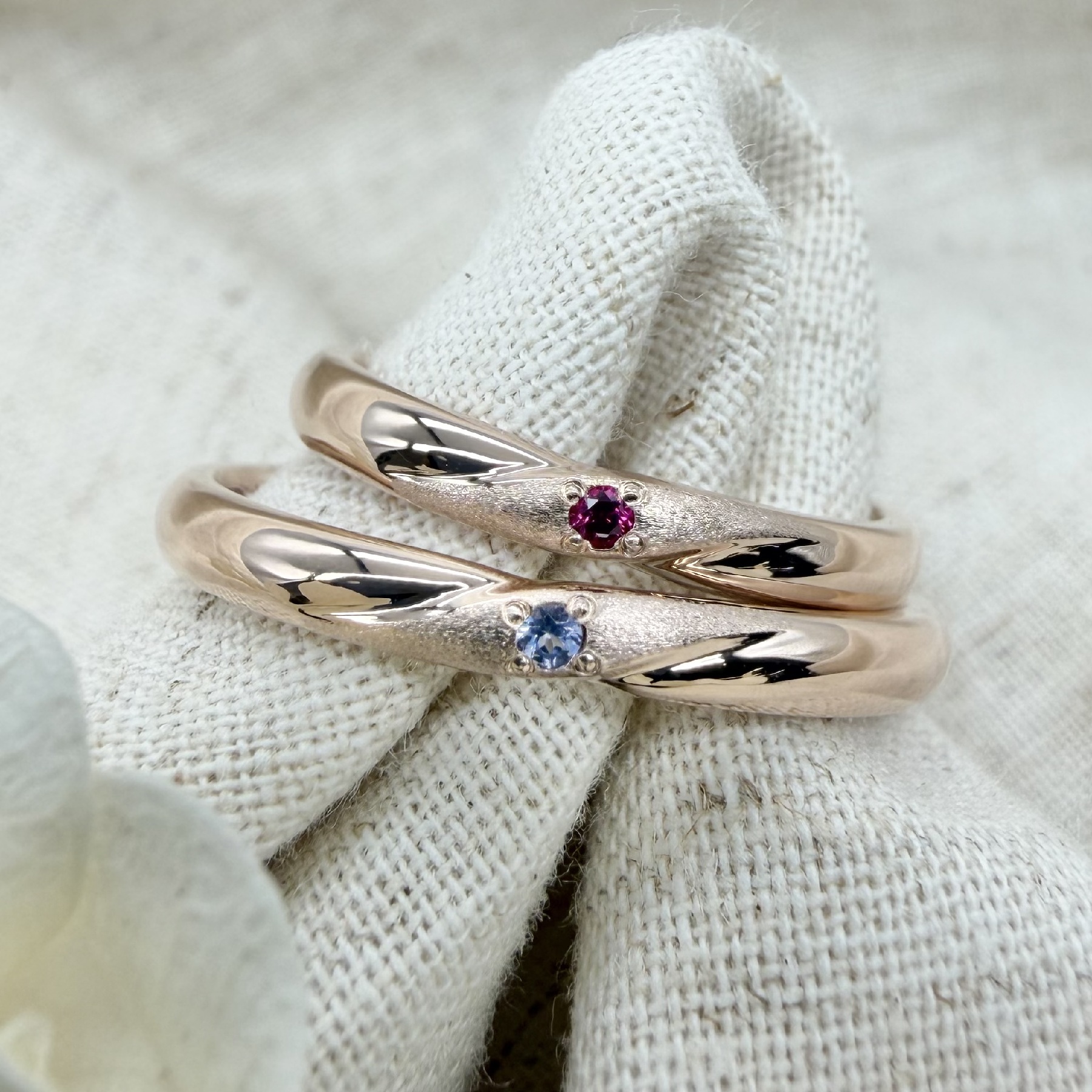 stonesお好みに合わせて、誕生石やカラーダイヤなど様々な宝石を指輪の外側・内側に埋め込むことができます(3~4週間程度のお預かり期間を頂戴いたします)。
