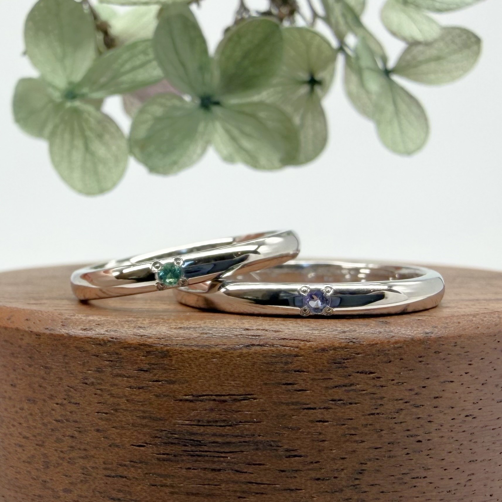 stonesお好みに合わせて、誕生石やカラーダイヤなど様々な宝石を指輪の外側・内側に埋め込むことができます(3~4週間程度のお預かり期間を頂戴いたします)。