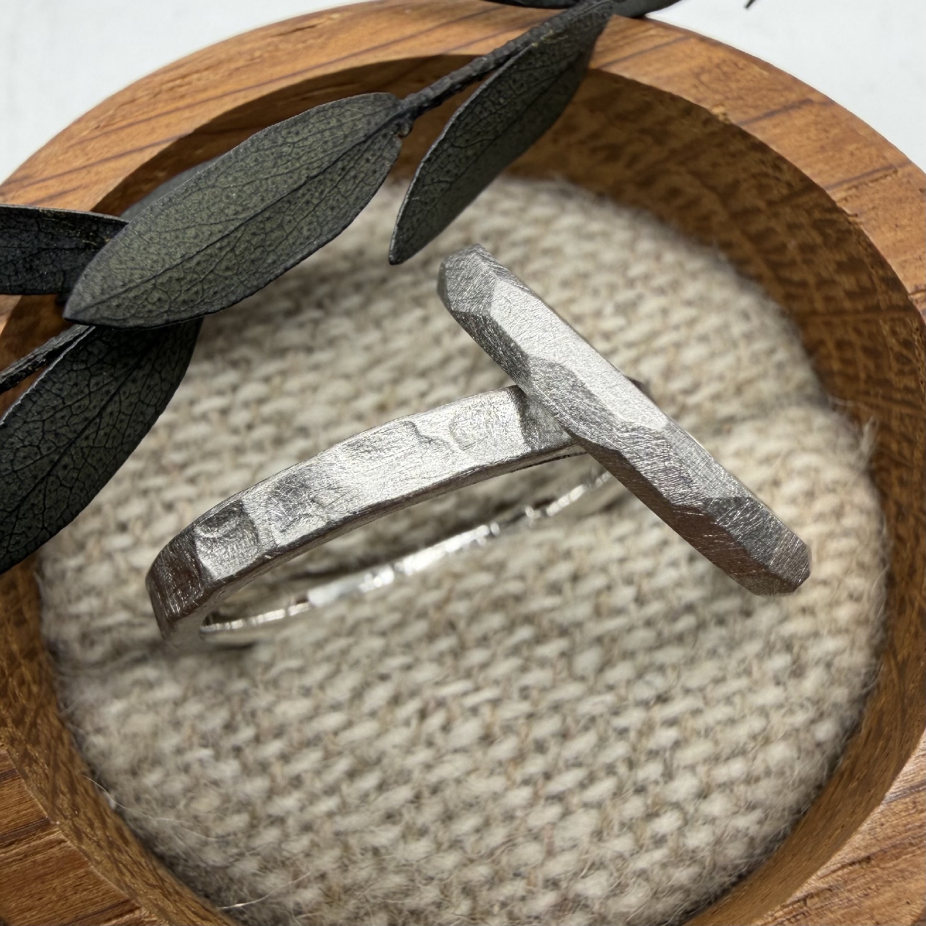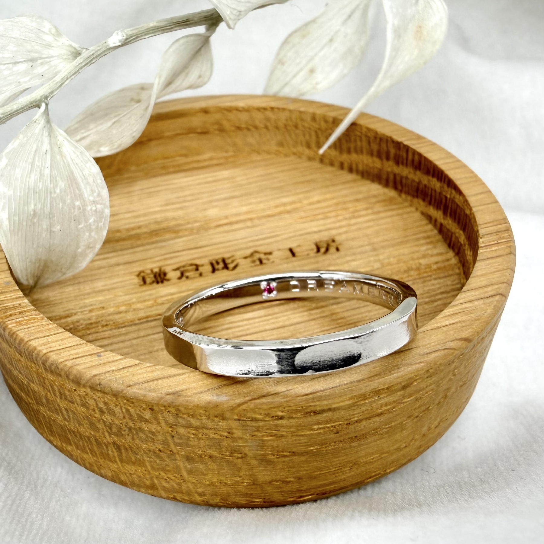 指輪の表面を平らにしたデザイン。存在感がありながら、シンプルなフォルムで日常へのなじみの良さも抜群です。