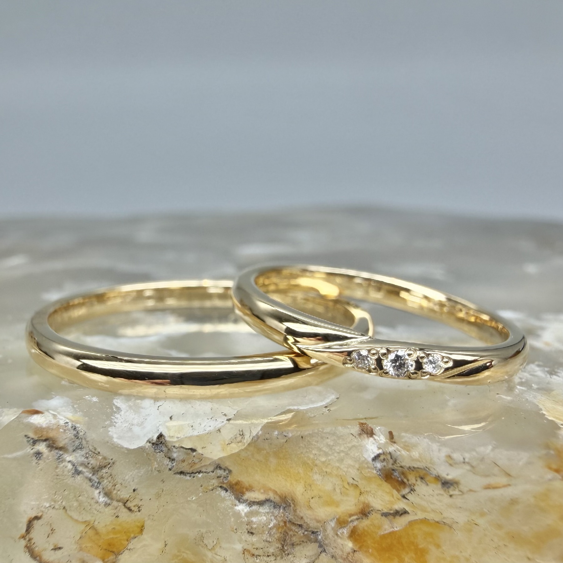 指なじみの良い丸みのあるデザイン。何十年たっても飽きのこないフォルムで「指輪の基本形」と言われています。