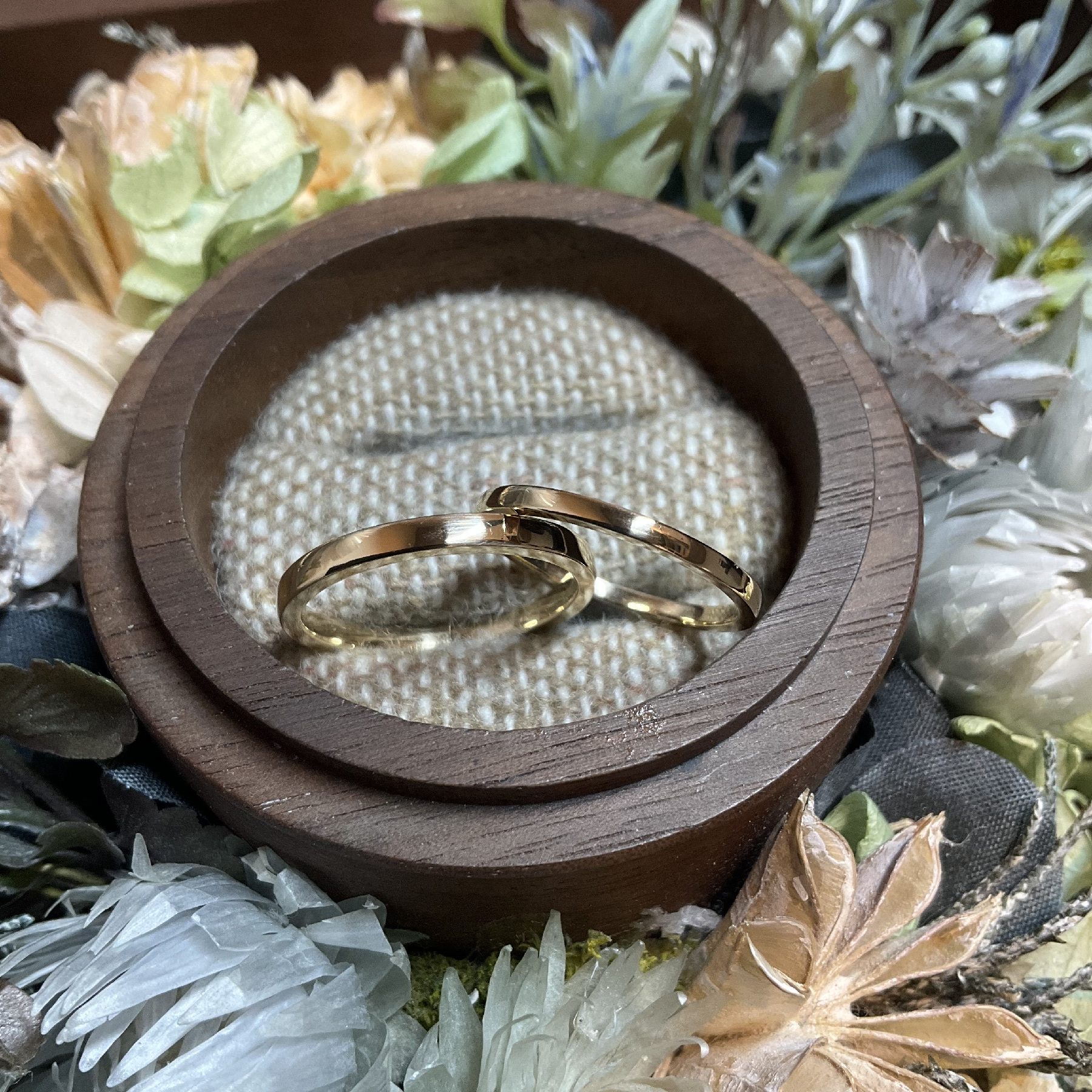 指輪の表面を鏡面のようにキラキラに磨き上げる王道の仕上げ。磨きの工程は大変ですが、その分達成感はひとしおです。