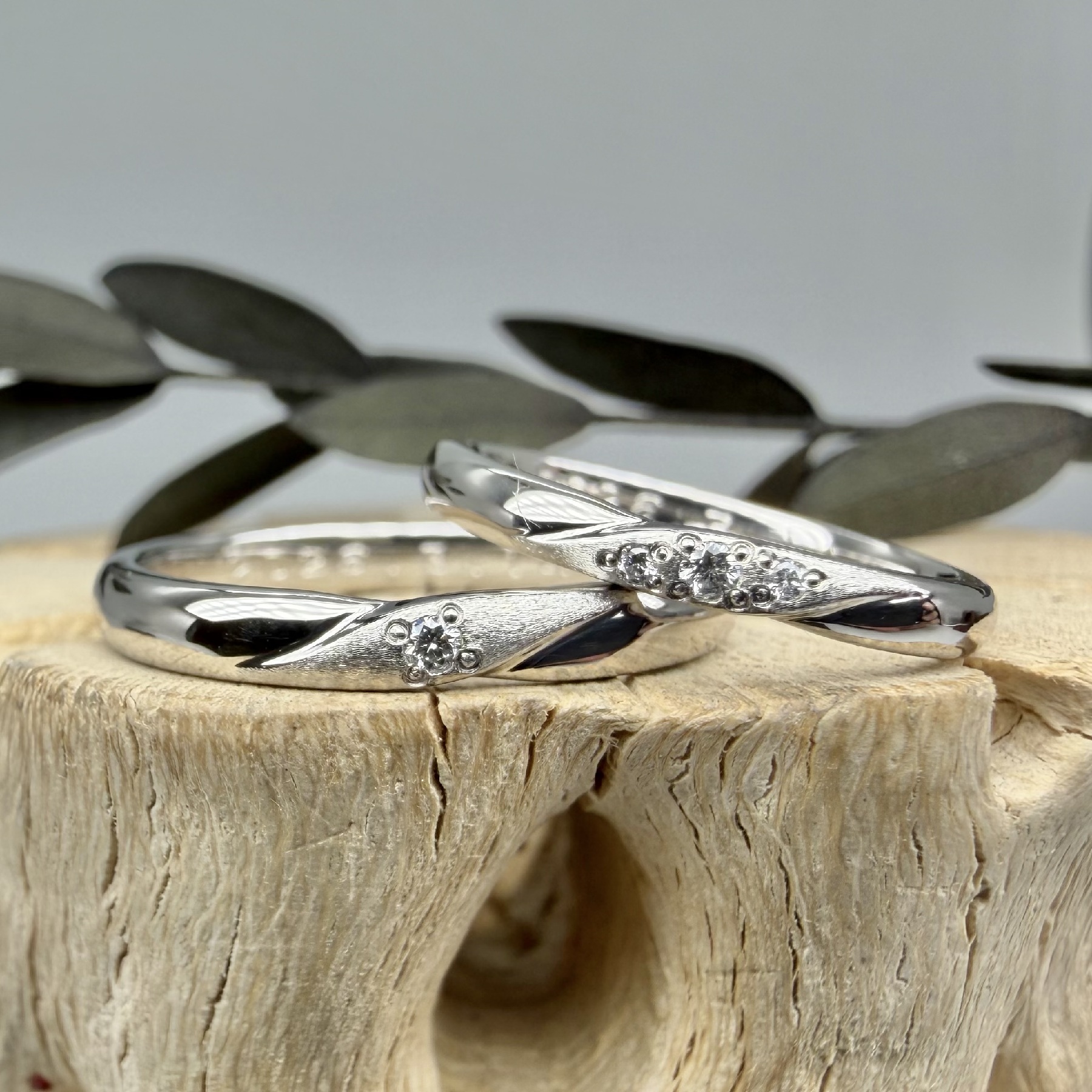シャープな白い輝きが特徴の、ブライダルジュエリーの王道。変色に強く、普段使いしやすいことも魅力です。