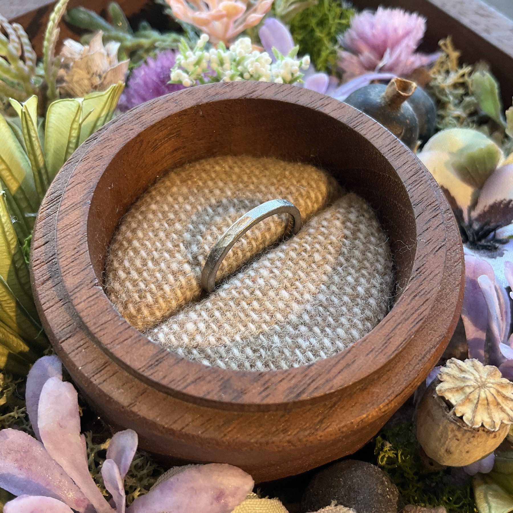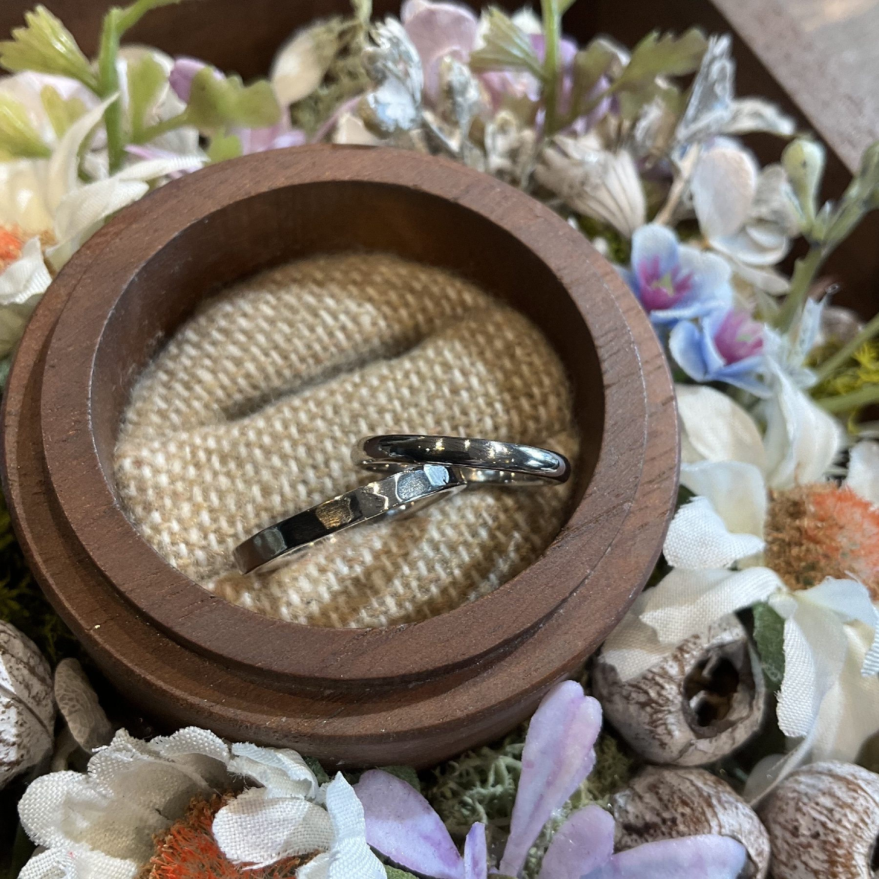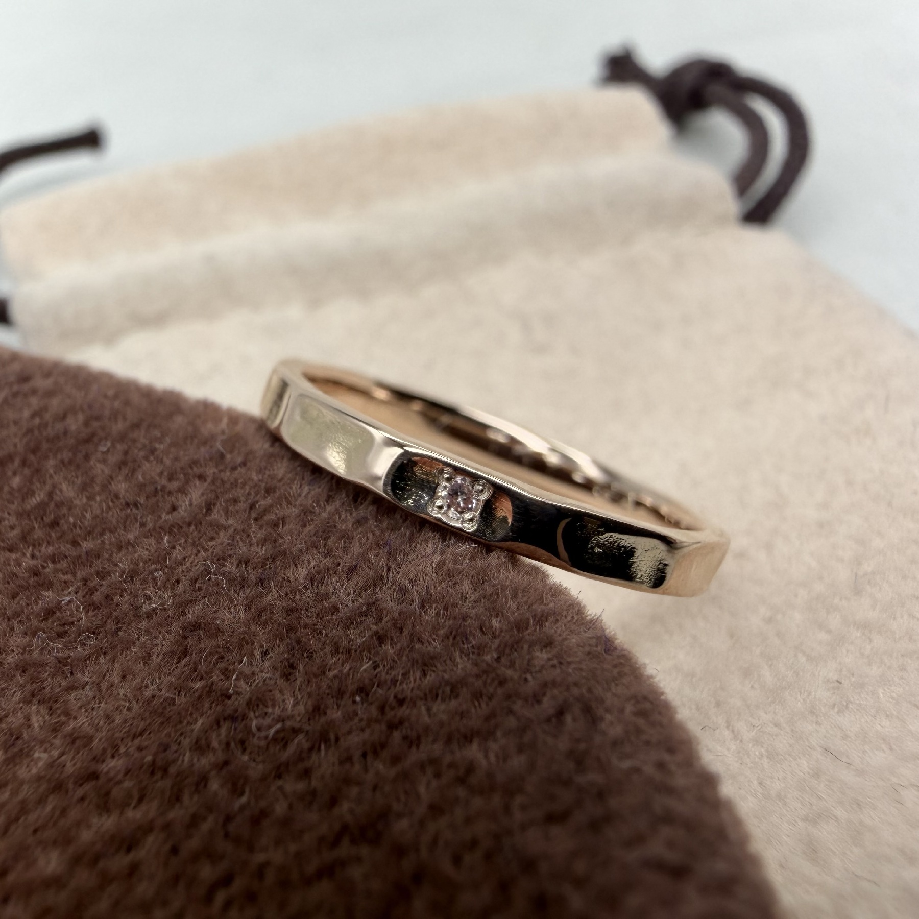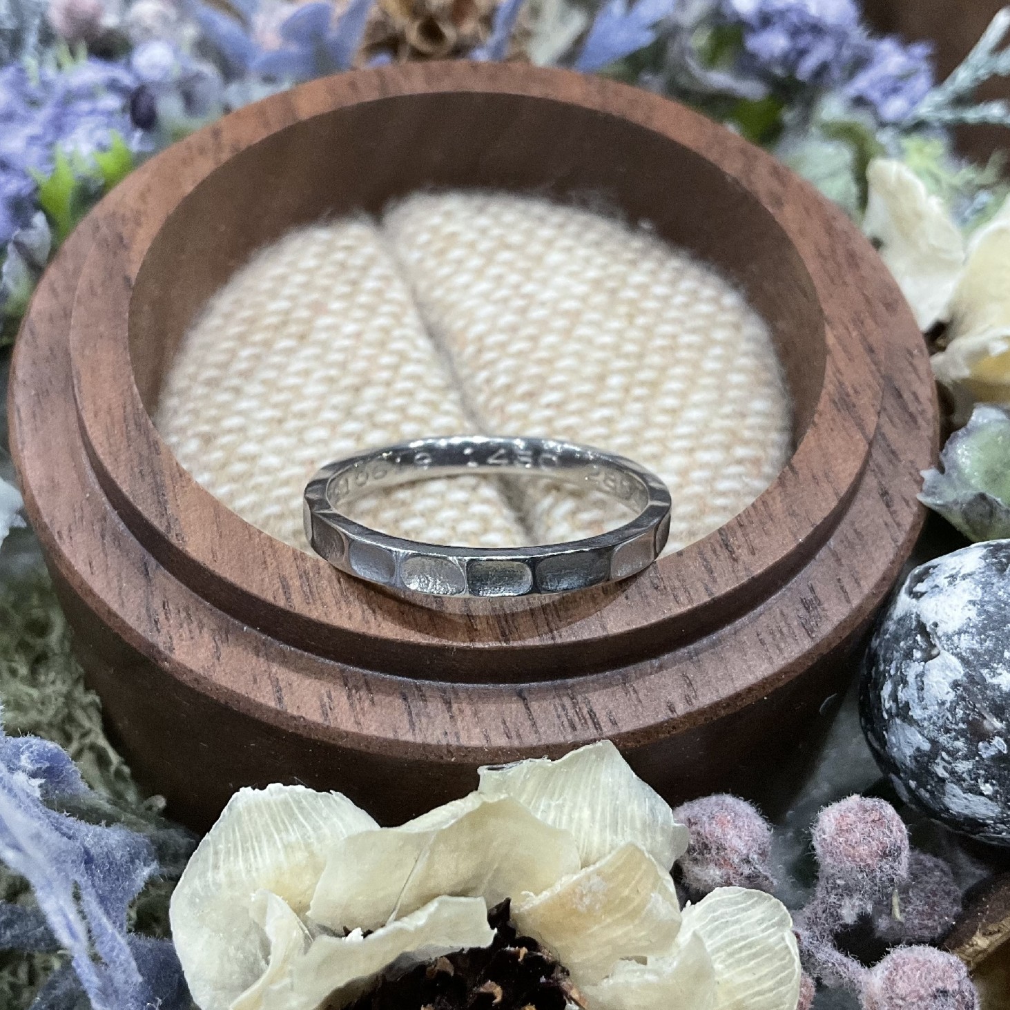 指輪の表面を平らにしたデザイン。存在感がありながら、シンプルなフォルムで日常へのなじみの良さも抜群です。