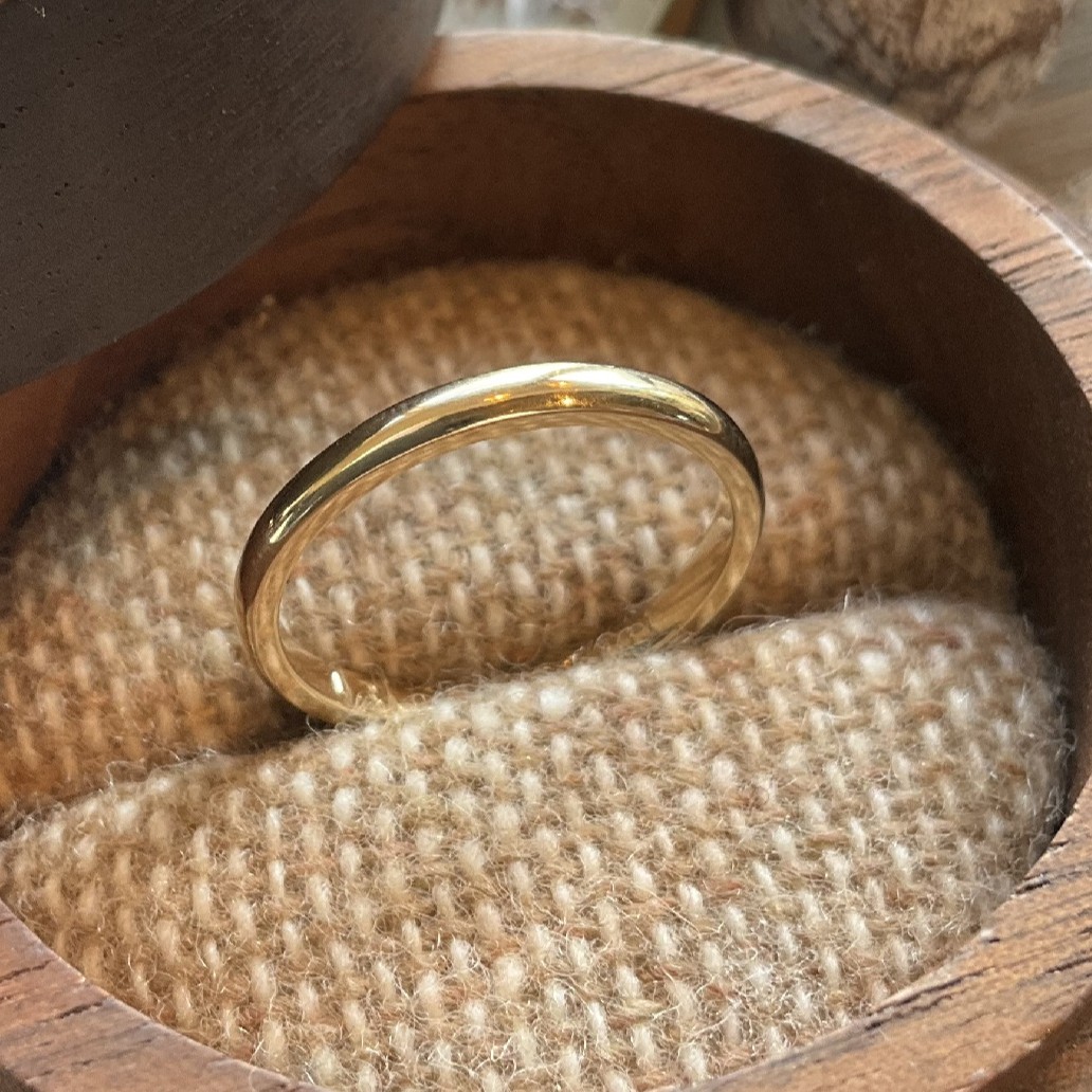 指なじみの良い丸みのあるデザイン。何十年たっても飽きのこないフォルムで「指輪の基本形」と言われています。