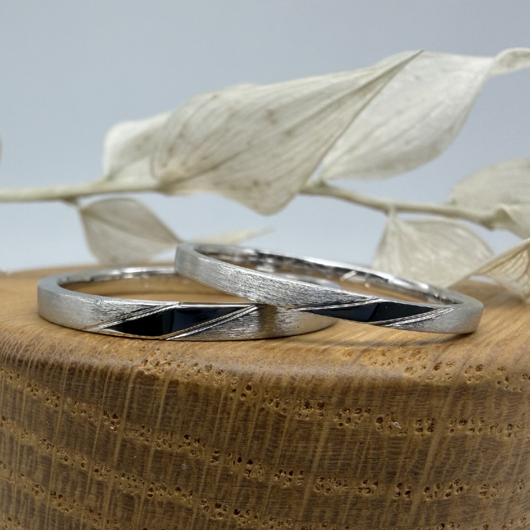 同じシルバーカラーのプラチナと比較して渋い色味を発色する素材。ハンサムで洗練された雰囲気を演出してくれます。
