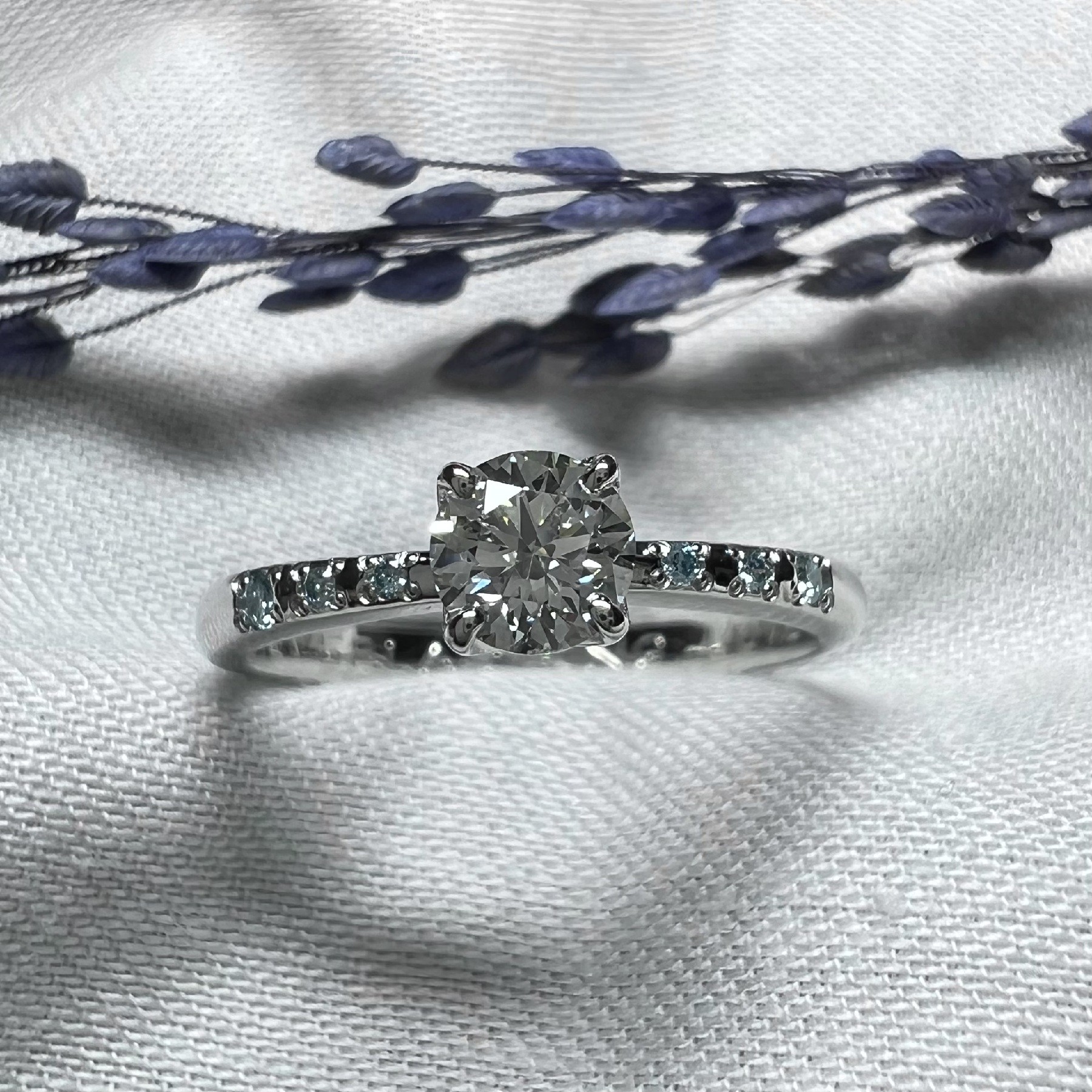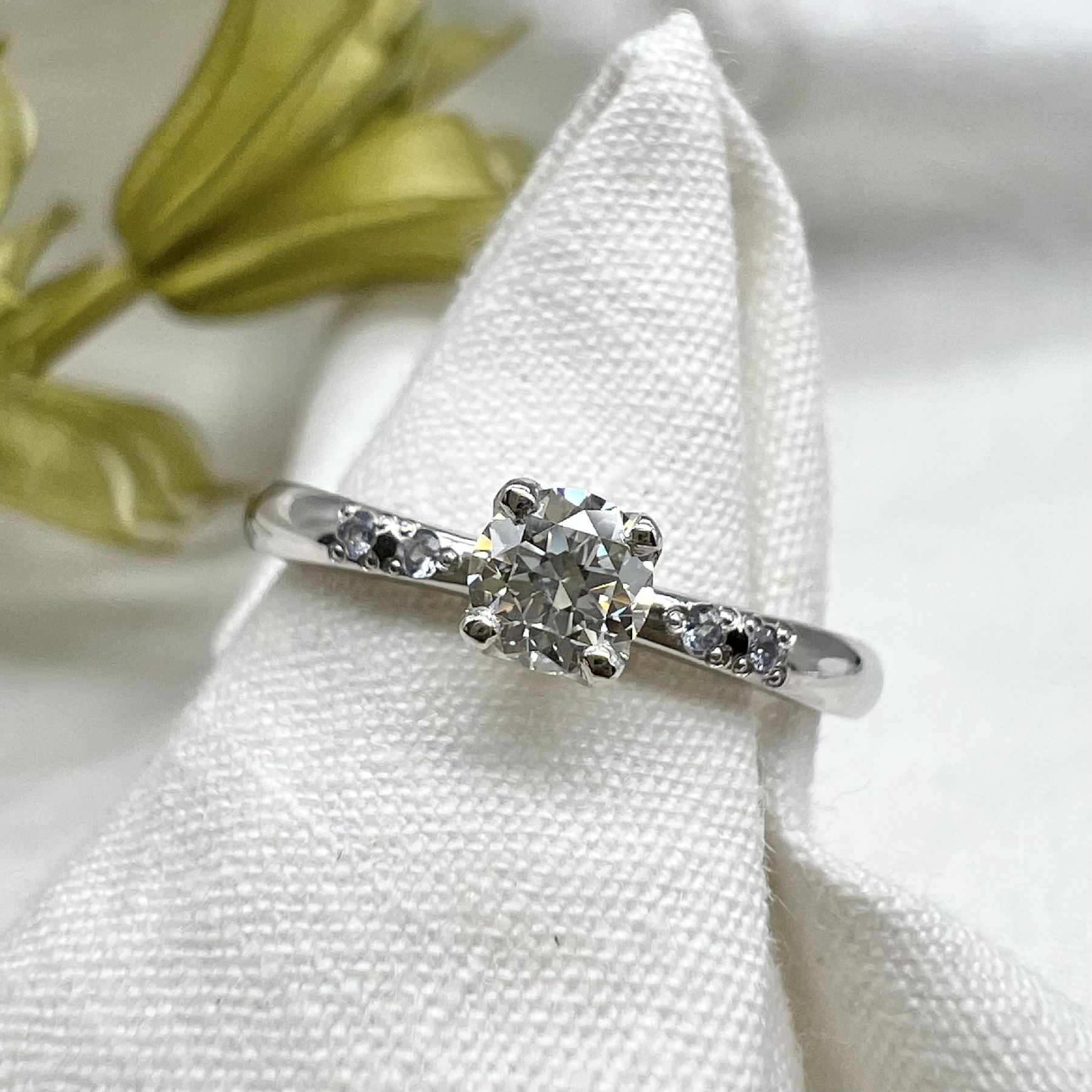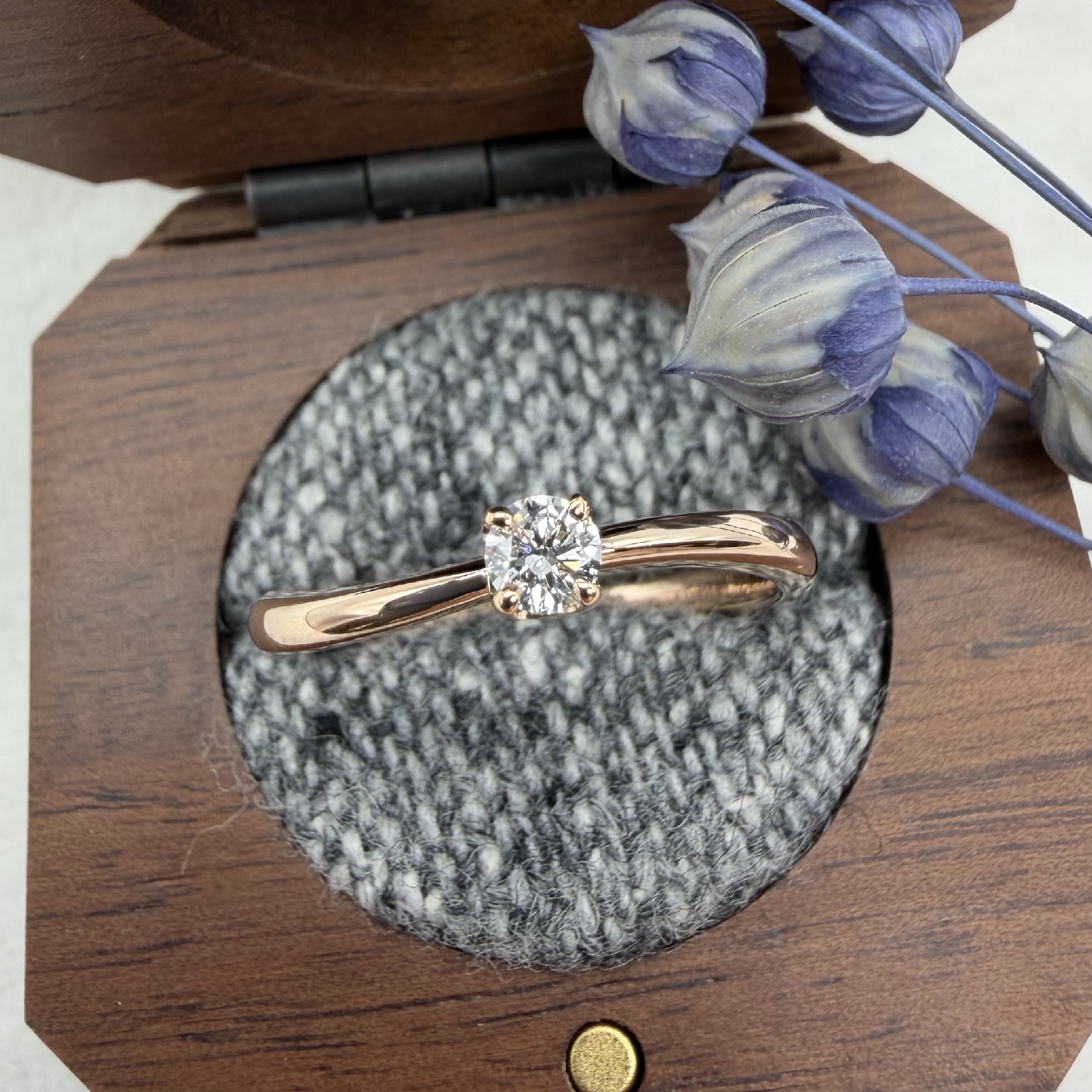 流行に左右されないデザインで、日常に馴染みやすい婚約指輪に仕上がります。単体で身につけるだけでなく、お気に入りの指輪との重ねづけもお楽しみください。
