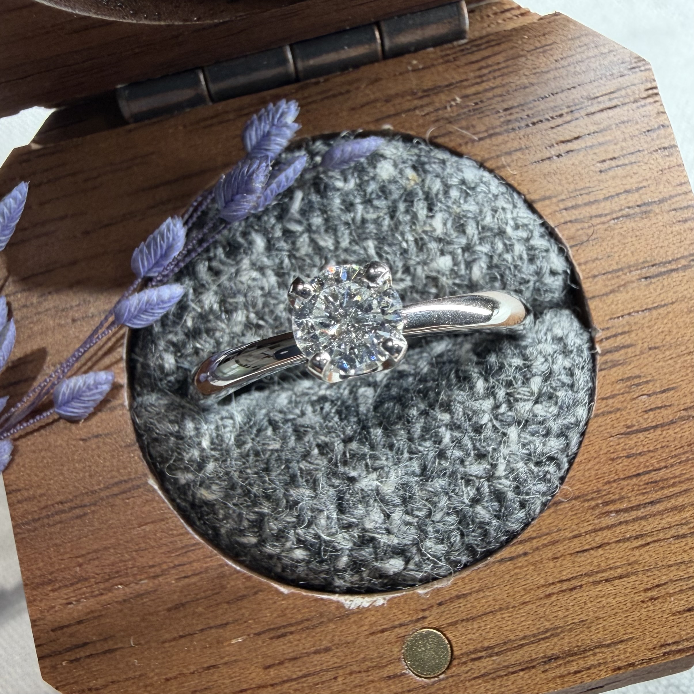 お手持ちのスマホなどで指輪と一緒に記念撮影。最後にお会計を行います。