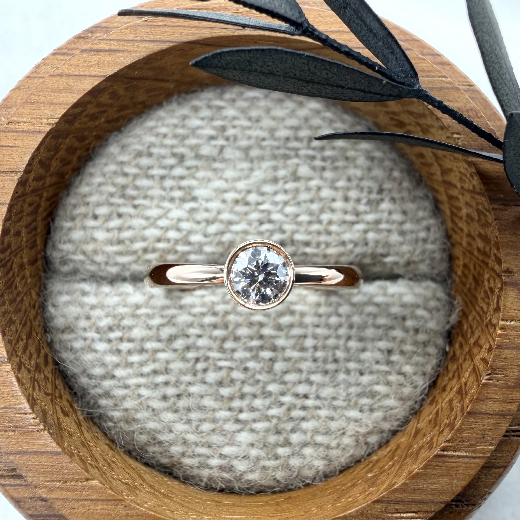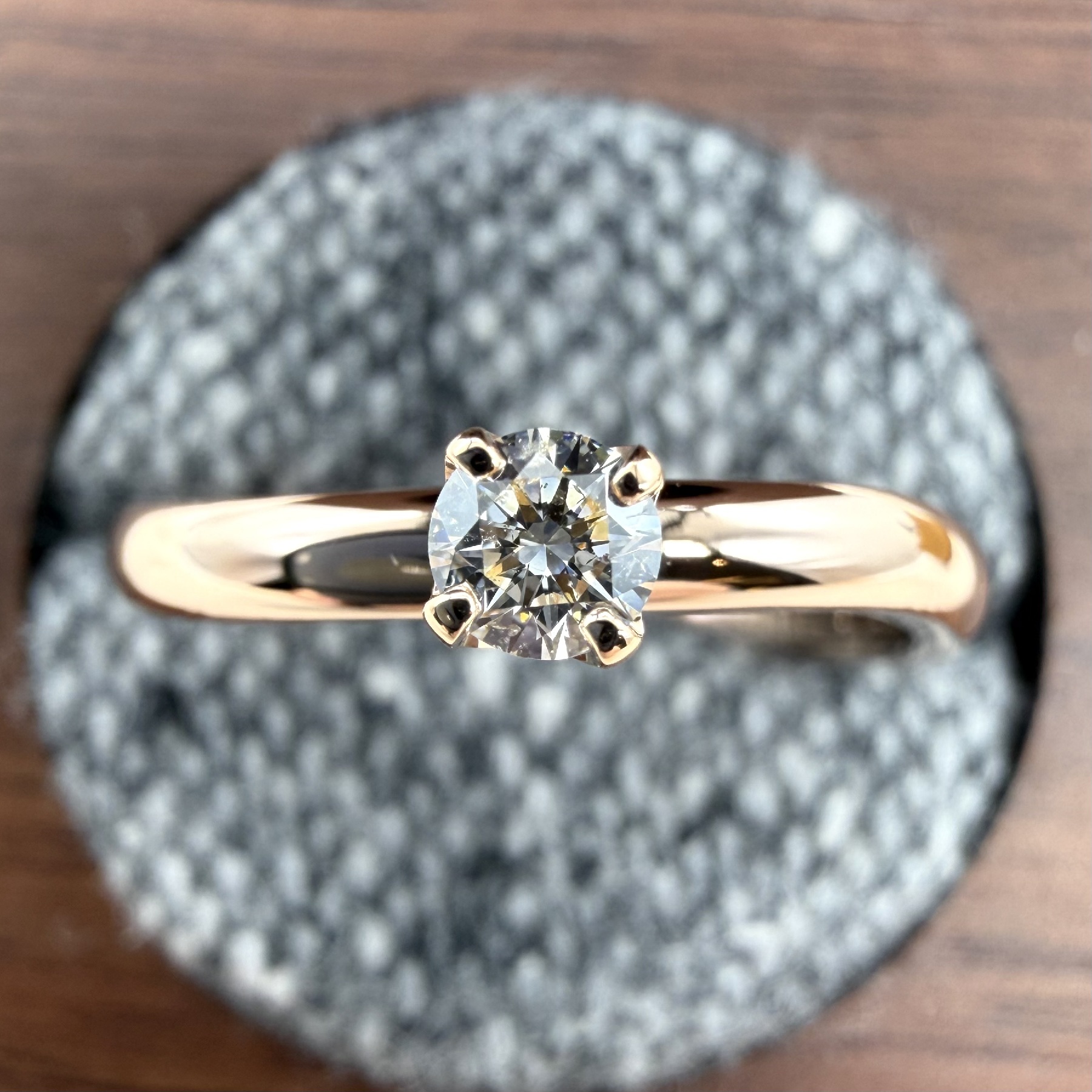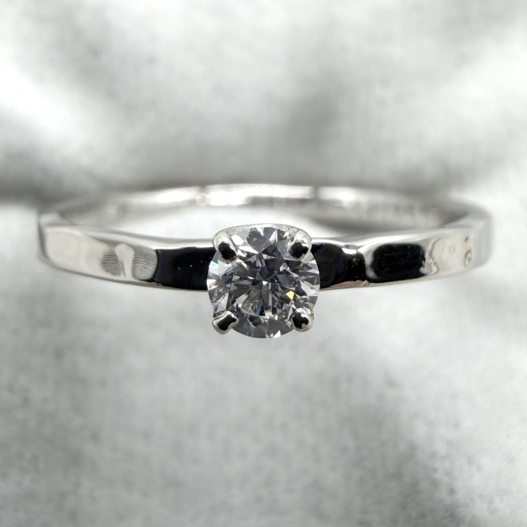 爪を使ってダイヤを固定します。ダイヤを最も美しく見せる留め方とされ、婚約指輪の王道のデザインとして知られます。