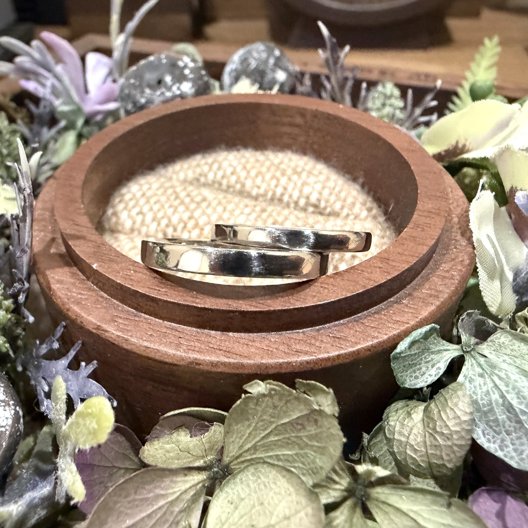 指輪の表面を平らにしたデザイン。存在感がありながら、シンプルなフォルムで日常へのなじみの良さも抜群です。