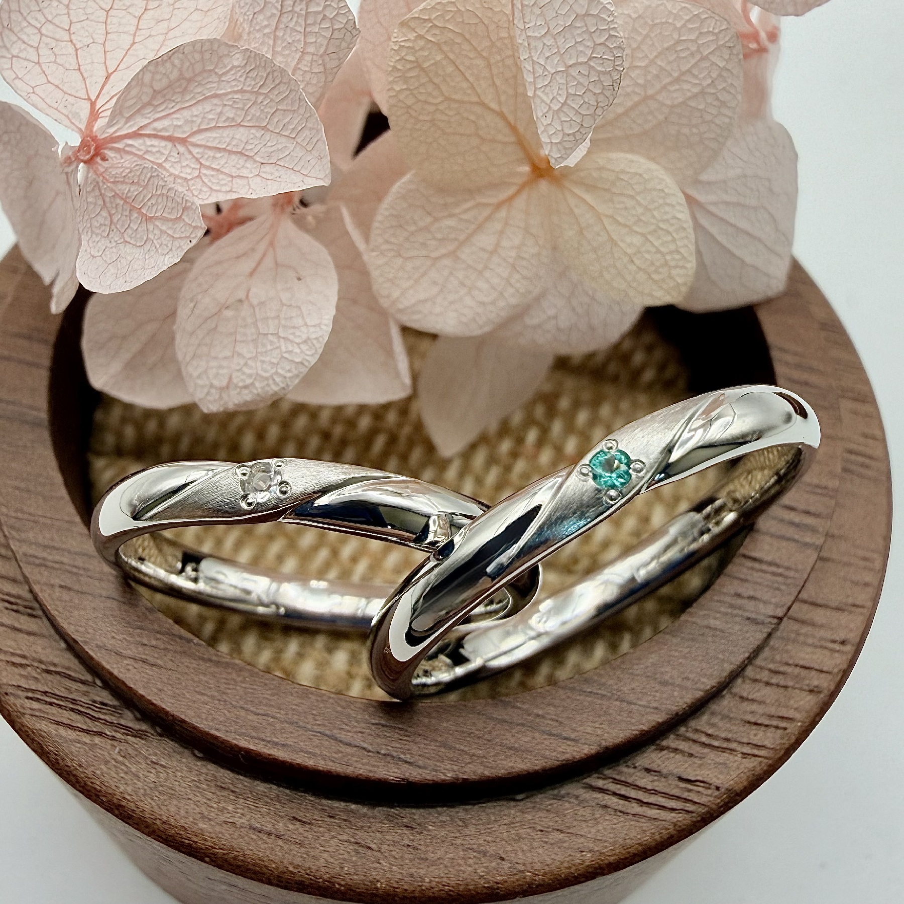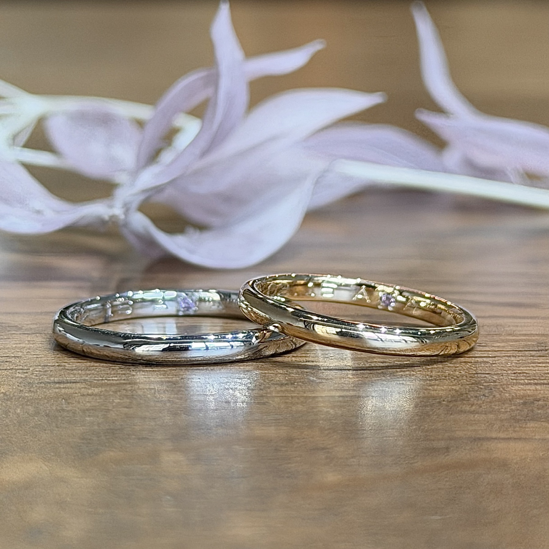 stonesお好みに合わせて、誕生石やカラーダイヤなど様々な宝石を指輪の外側・内側に埋め込むことができます(3~4週間程度のお預かり期間を頂戴いたします)。