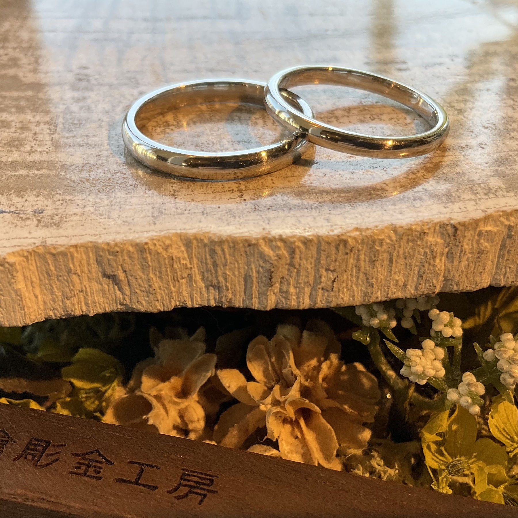 指輪の表面を鏡面のようにキラキラに磨き上げる王道の仕上げ。磨きの工程は大変ですが、その分達成感はひとしおです。