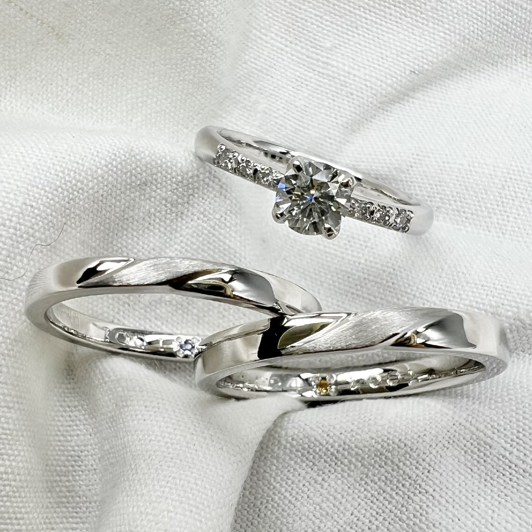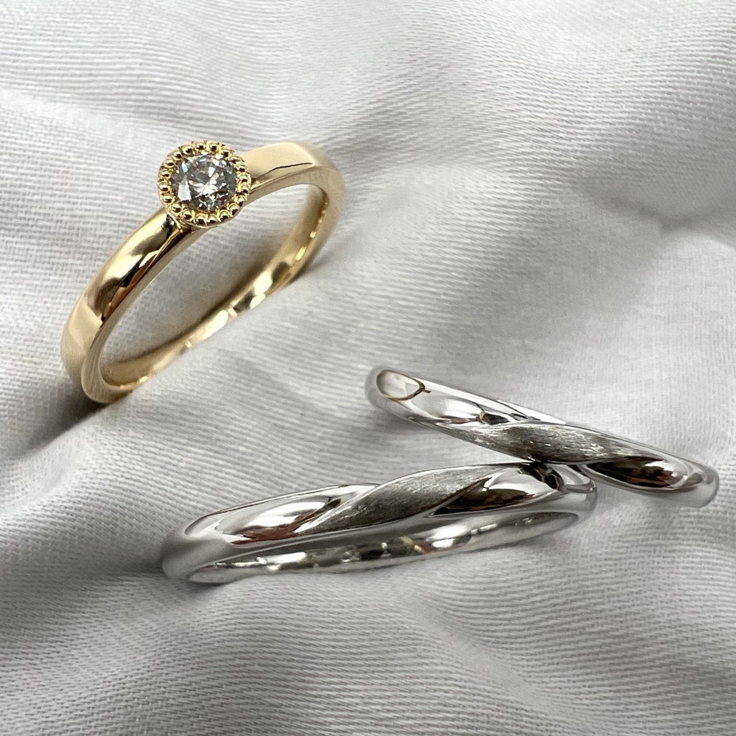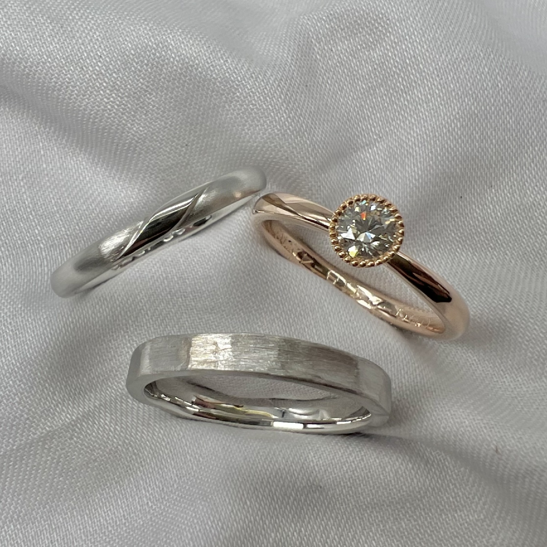 - 結婚指輪(Pt900/K18)2本、婚約指輪(Pt900/K18)1本の手作り