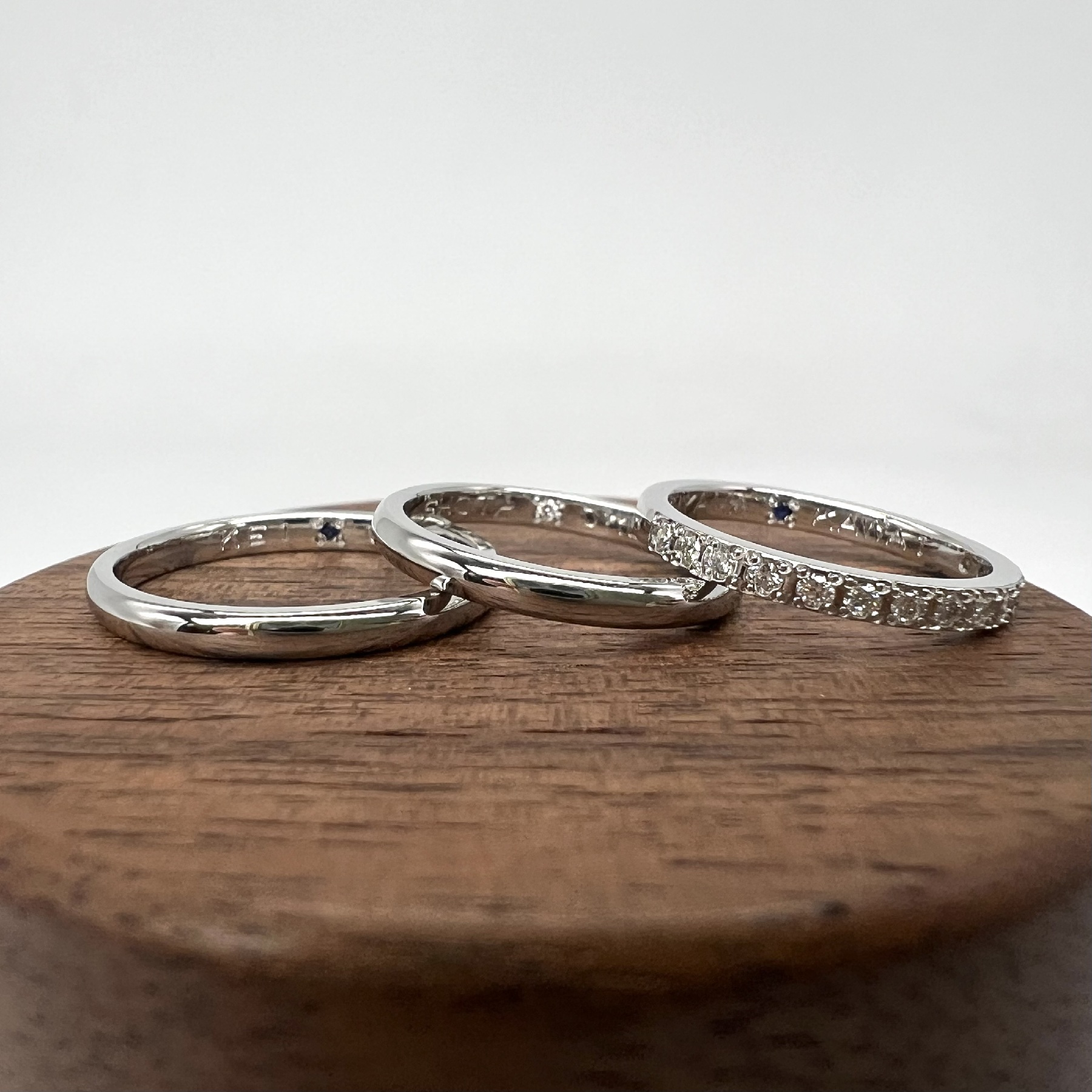 stonesお好みに合わせて、誕生石やカラーダイヤなど様々な宝石を指輪の外側・内側に埋め込むことができます(3~4週間程度のお預かり期間を頂戴いたします)。