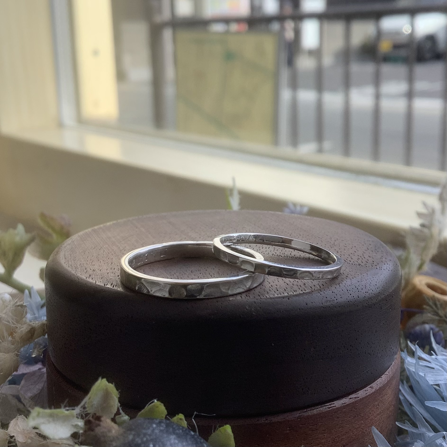 指輪の表面を平らにしたデザイン。存在感がありながら、シンプルなフォルムで日常へのなじみの良さも抜群です。